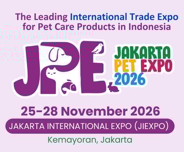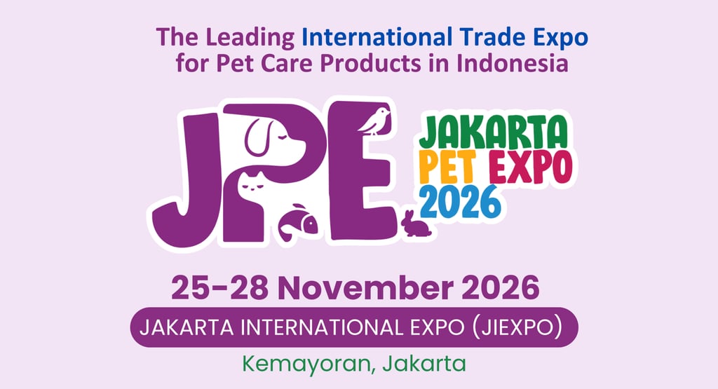 JAKARTA PET EXPO 2026 印尼领先的宠物护理与创新产品国际贸易平台 📍 雅加达国际展览中心(JIExpo Kemayoran) 🕙 10:00 – 17:00 | 📅 2026年11月25日至28日